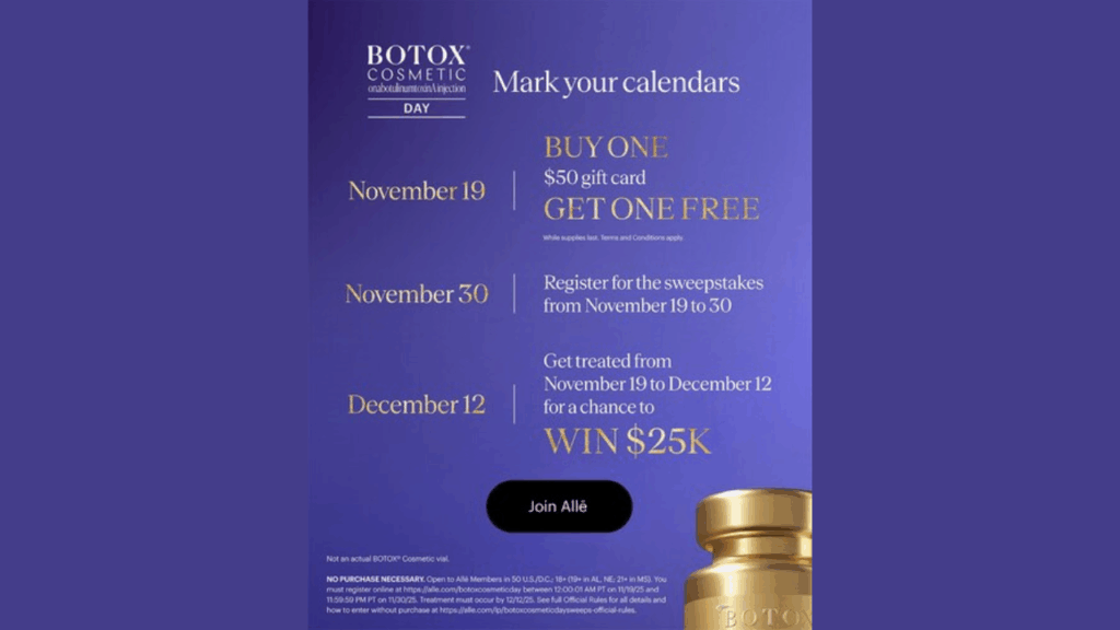 BOTOX Cosmetic Day Returns on Nov. 19, 2025: Here’s How to CelebrateWednesday, November 19, 2025, marks the seventh annual BOTOX Cosmetic Day.